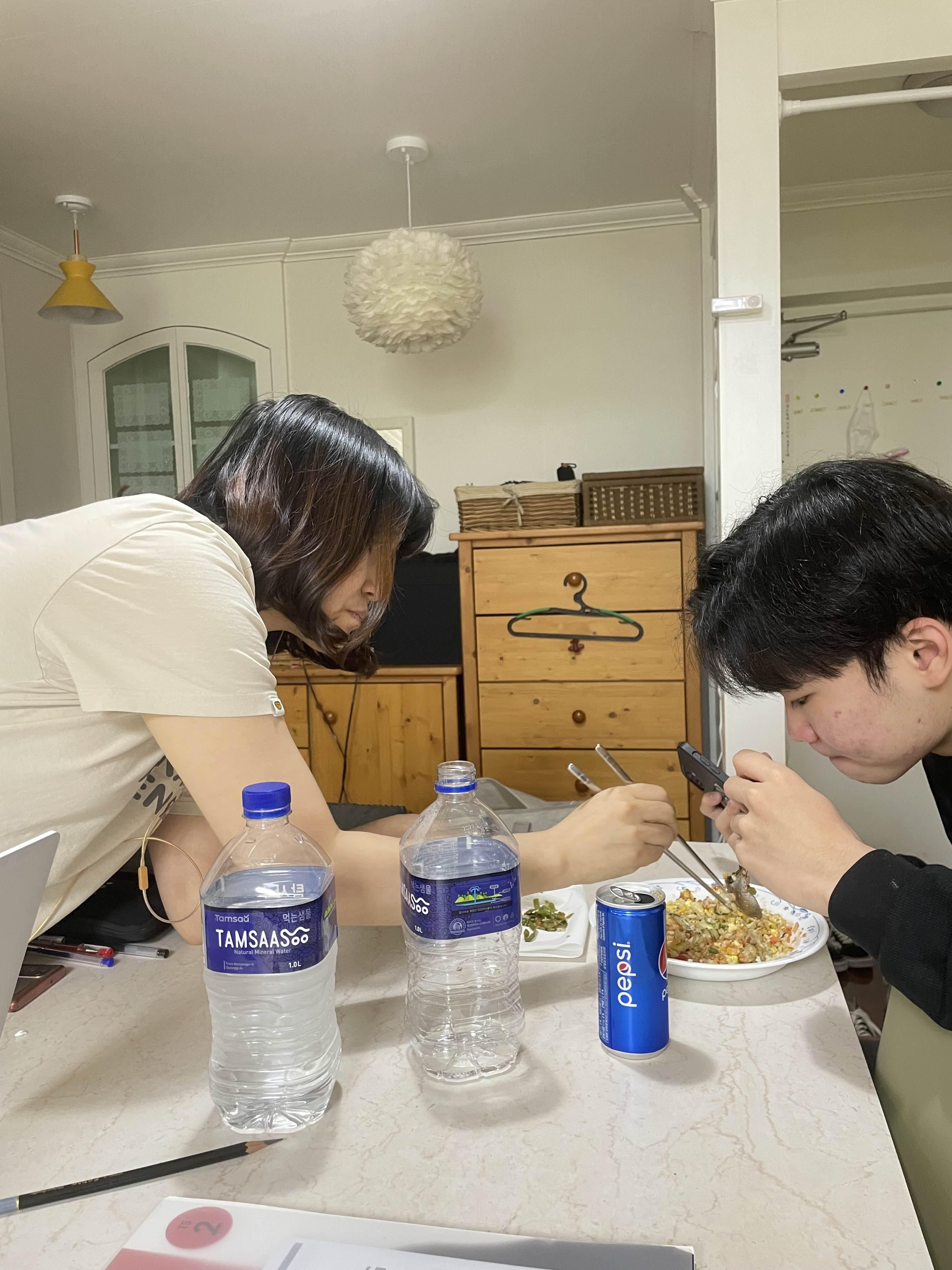 건우가 매콤한 볶음밥을 주문하자 엄마가 청양고추를 넣어서 볶음밥을 대령했다.